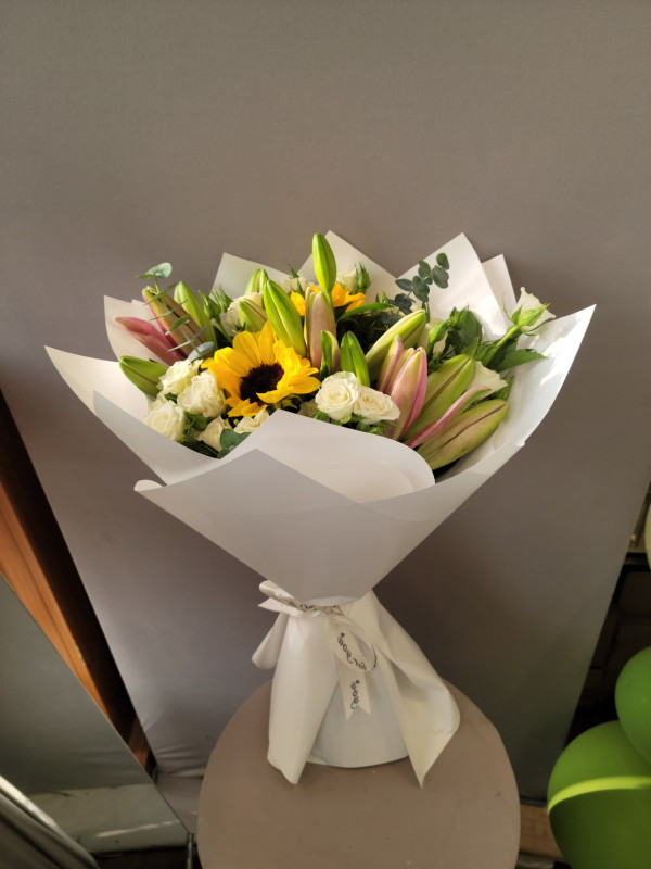 بوكيه أنيق يجمع بين رائحة الكازابلانكا مع إشراق دوار الشمس