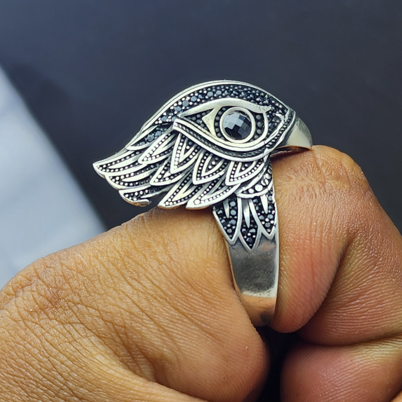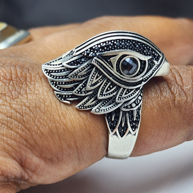 خاتم الصقر فضه ٩٢٥ مرصع بالزركن