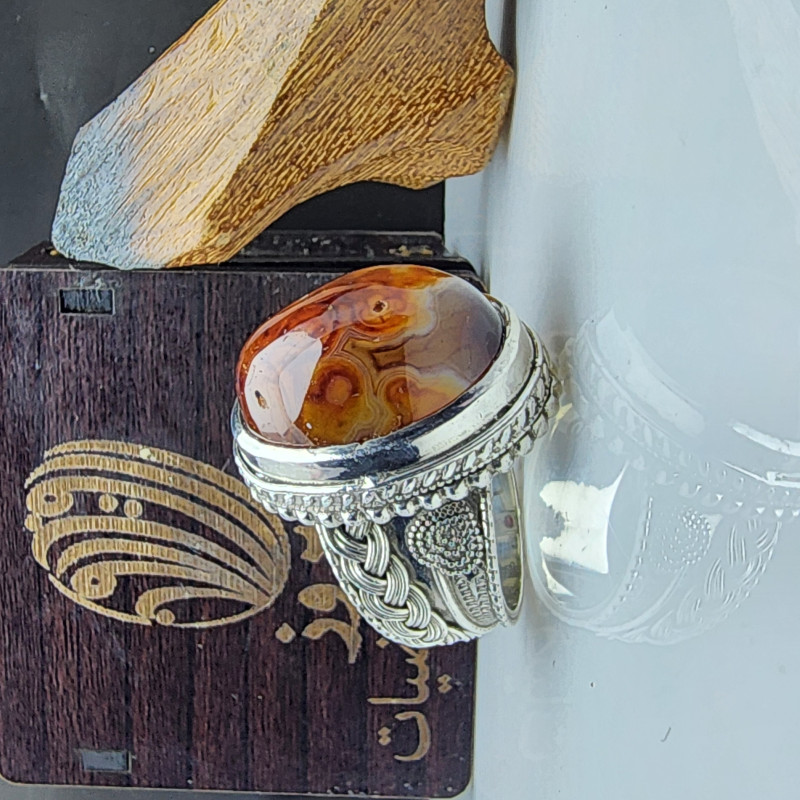 خاتم فضة قلم برتاش عقيق اصلي صياغه ماجد