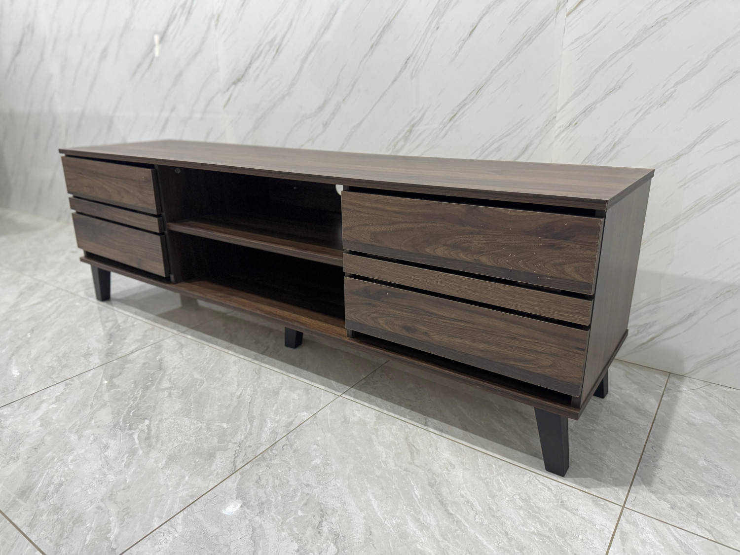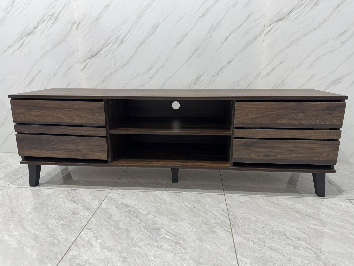 طاولة تلفزيون مصنوعة من خشب ماليزي فاخر، تجمع بين المتانة والشكل العصري، وتناسب جميع أنواع الديكورات.