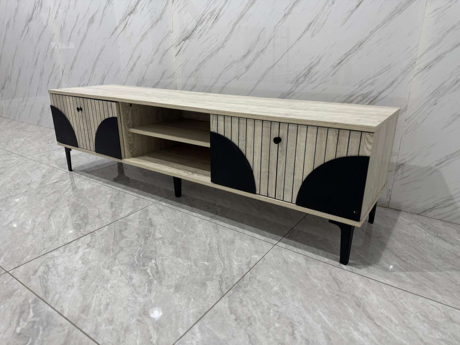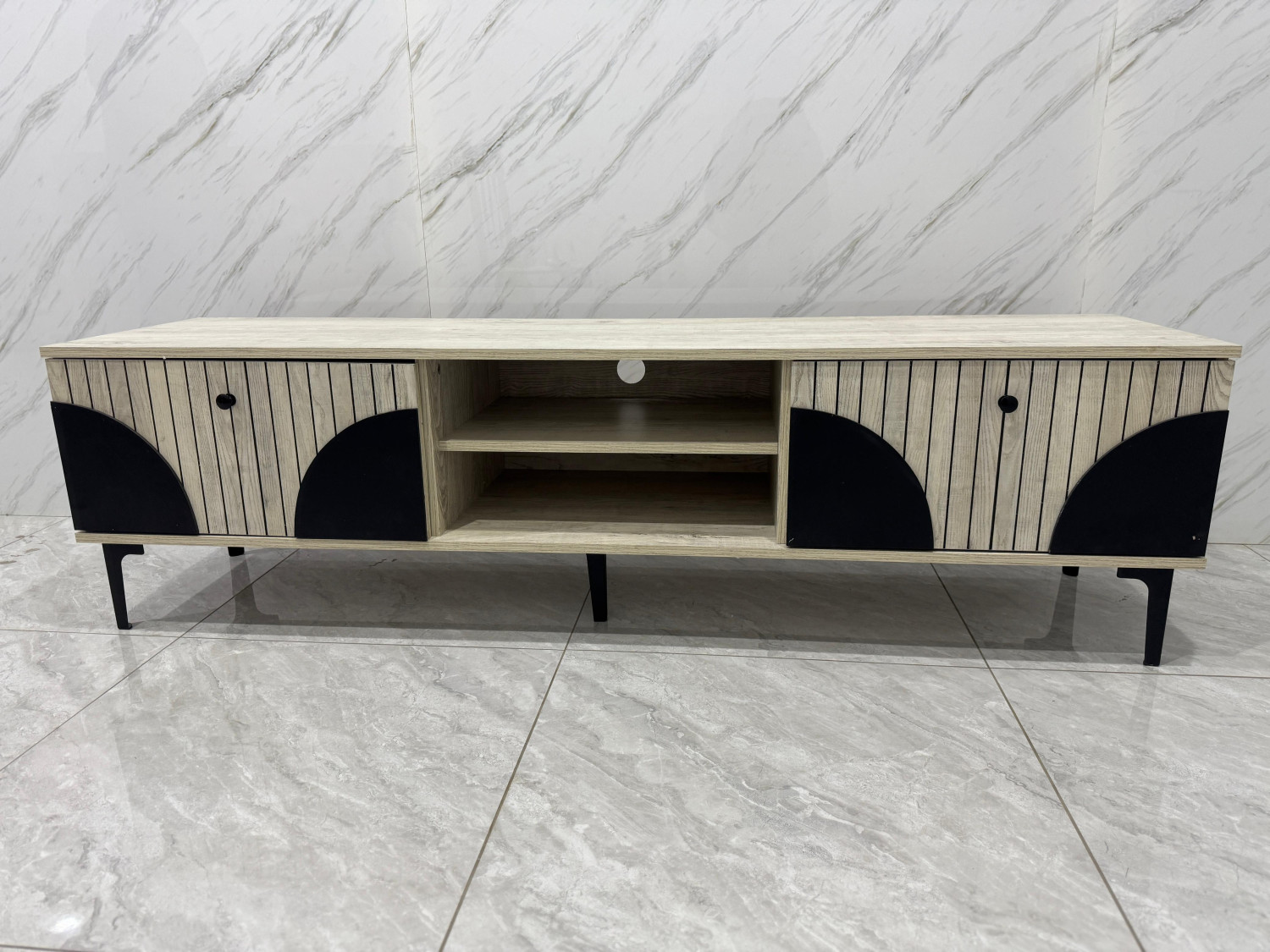 طاولة تلفزيون مصنوعة من خشب ماليزي فاخر، تجمع بين المتانة والشكل العصري، وتناسب جميع أنواع الديكورات.