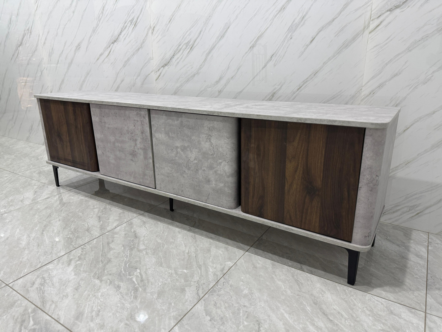 طاولة تلفزيون مصنوعة من خشب ماليزي فاخر، تجمع بين المتانة والشكل العصري، وتناسب جميع أنواع الديكورات.