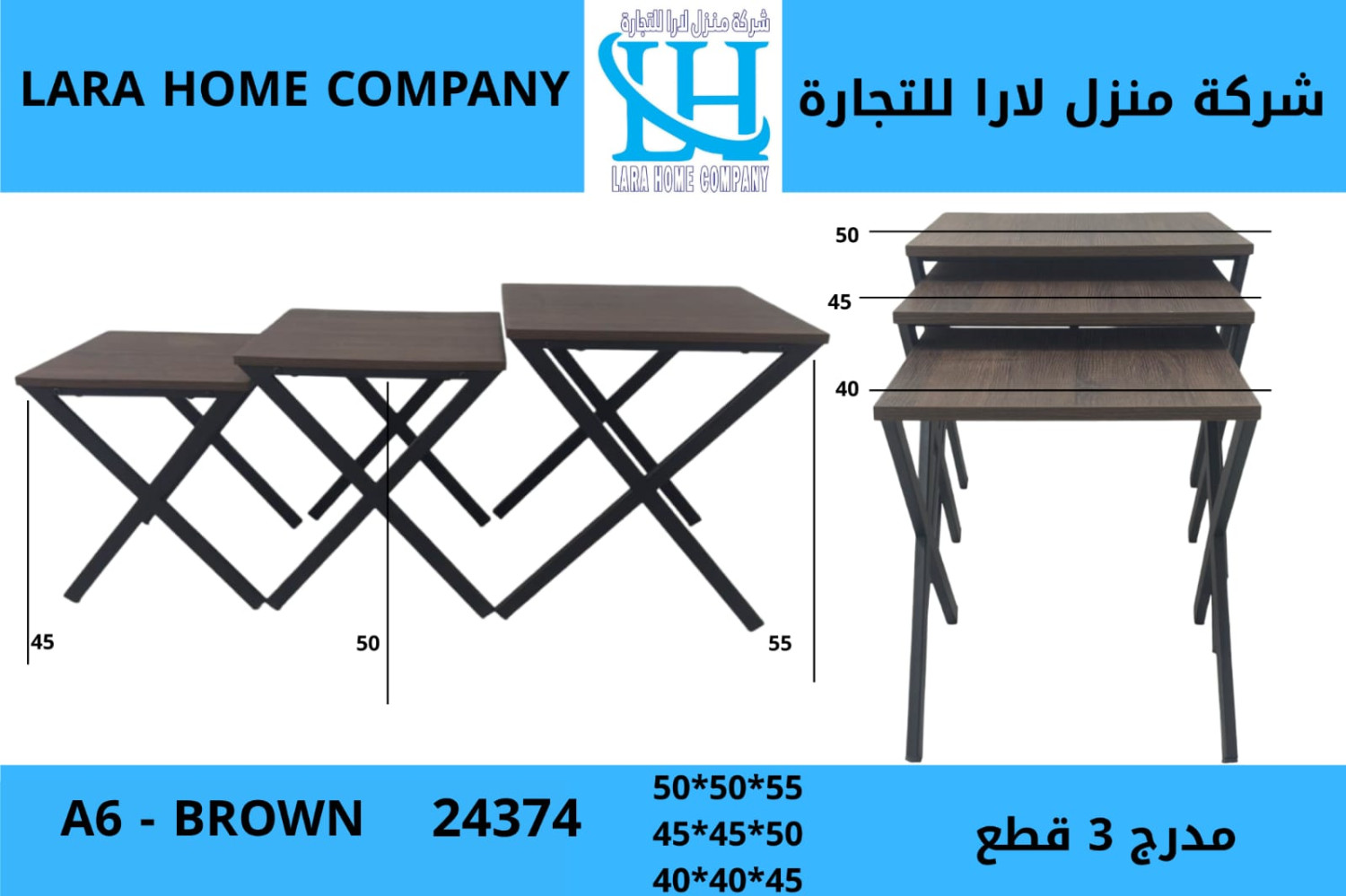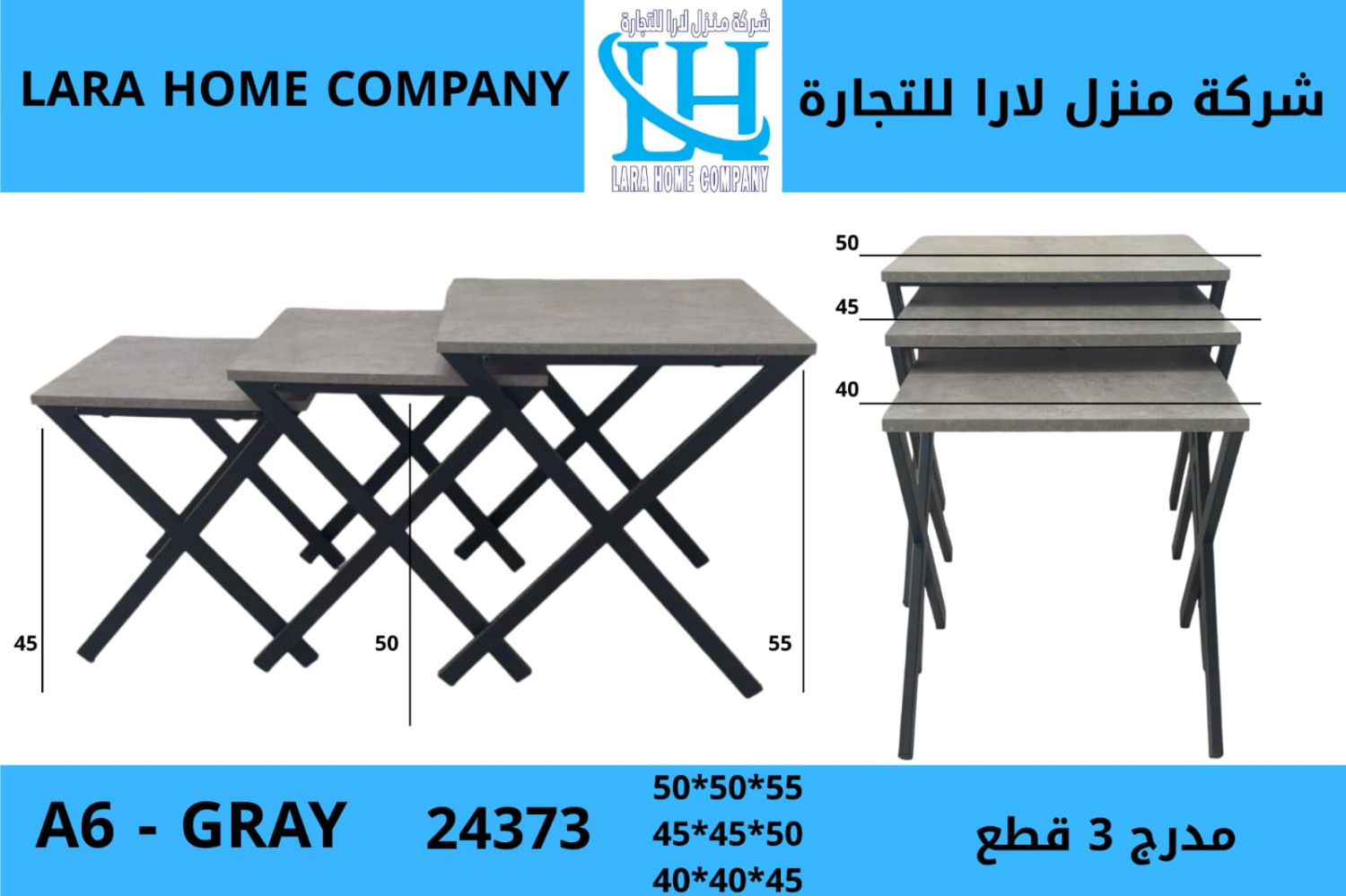 طقم طاولات 3 قطع بتصميم مدرّج عصري